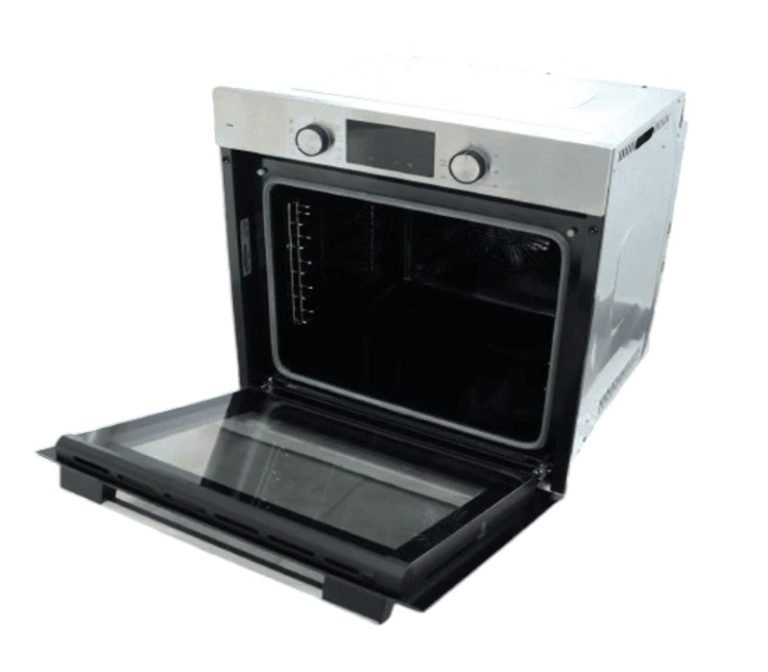 Bjs Everest 60×60 Cooker 3 Gas Burners + 1 Electric Plate, rapid plate, WOK triple ring burner, sensor, blue enamel oven, turbo fan, food warmer, Stainless Steel. Silver
