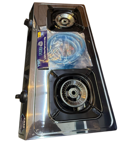 Nunix Cooker, Top Table 2 Gas Burner – Stainless + 1.5M Gas Pipe & 13KG Regulator SS001