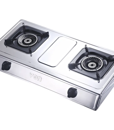 VON Cooker 2 Burner Gas Table Top Enamel Coated, Stainless Steel With 1.5M Free Gas Pipe VCT2XWGX