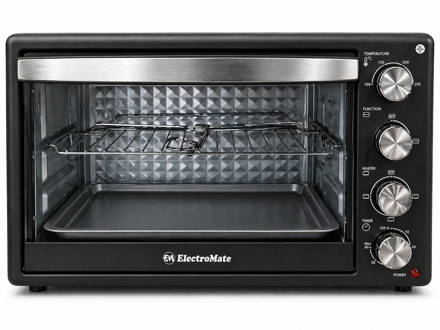 ElectroMate Electric Oven 45L EO02-45L – 2000W, Grill and Rotisserie, Multi-Function Baking Oven with Light