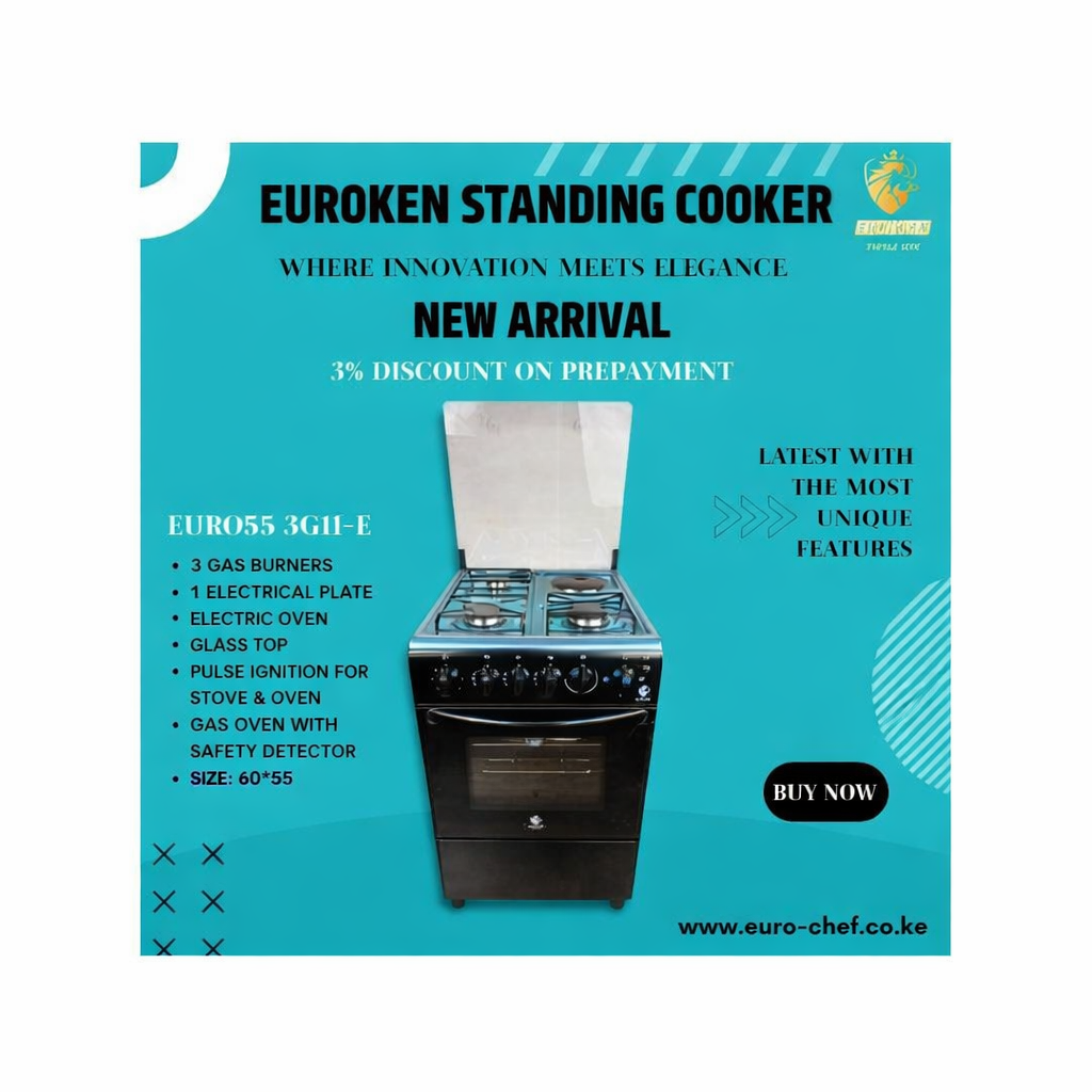 Elevate your culinary prowess with the Euroken Euro55-3+1-E Standing Cooker – where innovation meets elegance, and cooking becomes an art form. Experience the difference today!