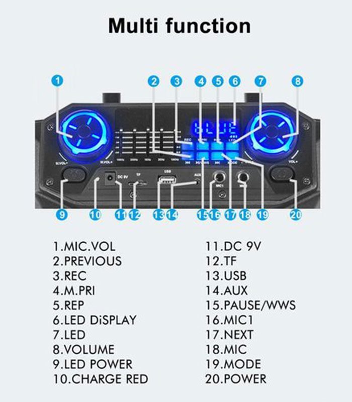 - Versatile Connectivity:Â Supports TF card, USB, AUX, and TWS (True Wireless Stereo) for flexible audio input options.