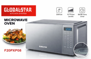 Upgrade your kitchen with the Globalstar F20PXP08 Microwave Oven, designed for convenience, efficiency, and modern living. With a 20-litre capacity, this microwave is perfect for everyday use—whether you’re reheating meals, defrosting frozen foods, or preparing quick dishes.The sleek digital control panel offers 10 adjustable power levels, giving you precise control over your cooking. Its defrost function ensures even thawing of meat and frozen items, while the 99-minute timer allows for flexible cooking without constant monitoring.Built with a stylish silver finish, this microwave adds a modern touch to any kitchen while delivering reliable performance for homes, offices, and small businesses.
