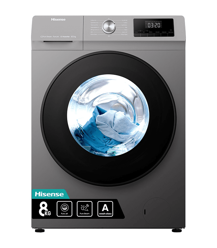 The Hisense WDQY8014EVJMT 8Kg Washer & 5Kg Dryer. Hisense WDQY8014EVJMT 8Kg Washer & 5Kg Dryer is perfect for medium households who want the convenience of a washer and dryer in one appliance