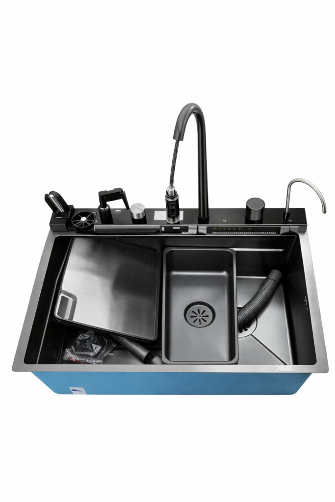 Unlike basic sinks, it includes a complete set of accessories, eliminating the need for additional purchases. The durable stainless steel construction ensures long-term reliability, while the modern design enhances the overall look of your kitchen.