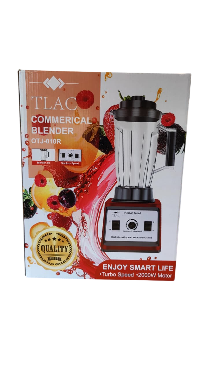 The TLAC OTJ-010R Commercial Blender is designed for powerful and efficient blending in homes, cafés, juice bars, and restaurants. Equipped with a high-performance 1500W motor, it delivers strong crushing power for smoothies, juices, soups, sauces, and ice blending.
