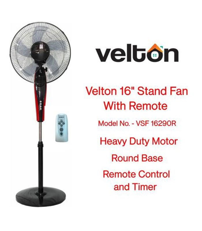 VELTON brand provides affordable home appliance products to customers without compromising on quality. This product is a 16” fan with a very beautiful digital display. It comes with 3 speed selection which can be remote controlled. We have considered consumer needs and used 5 blades for better air circulation. Worried about setting time for a good nights sleep? The Velton VFS-16290R comes with a timer function. It has a very heavy base for the better stability. Look no further for a very good quality unique fan.