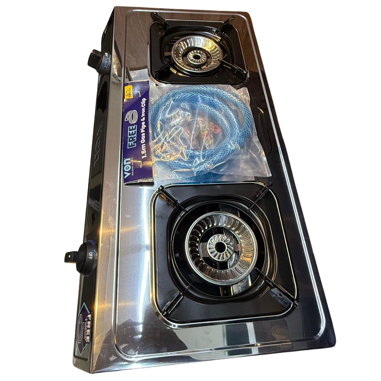 Featuring two high-efficiency burners, this cooker allows you to prepare multiple meals at the same time, saving time and energy. The strong pan supports provide excellent stability for different cookware sizes, while the easy-to-use control knobs ensure precise flame adjustment for perfect cooking results.
